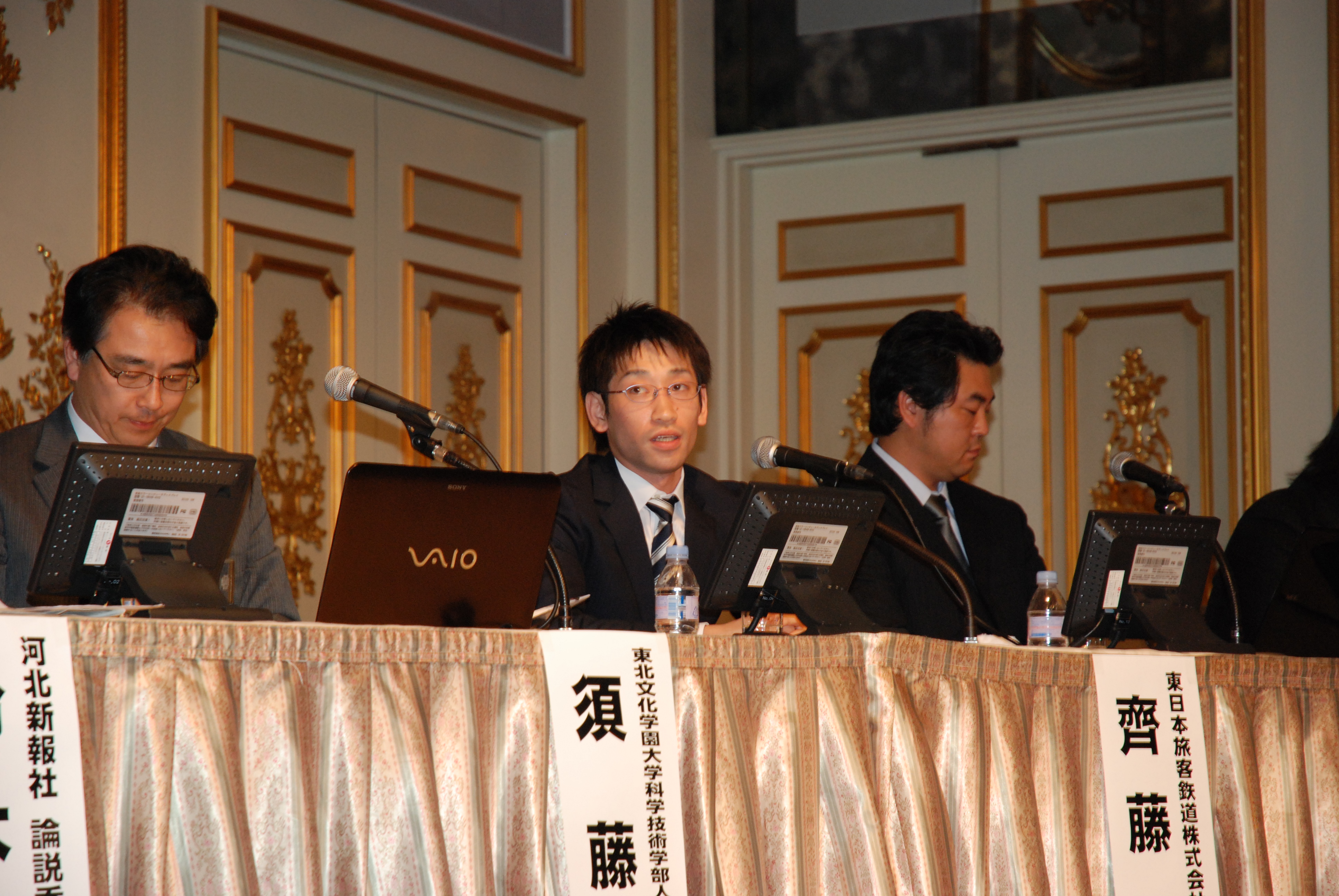 6月19日(日)、仙台の江陽グランドホテルにて震災復興フォーラムが行われ、研究者の方々の講演後のパネルディスカッションで、第6期同窓生 齋藤誠人さんがパネリストとして発表されました。