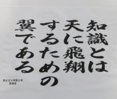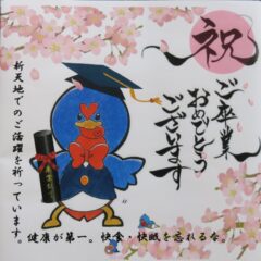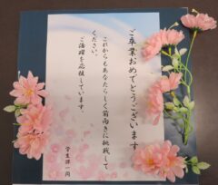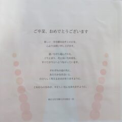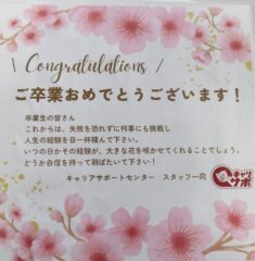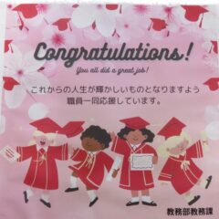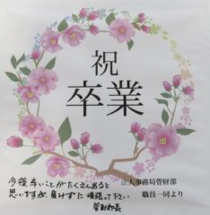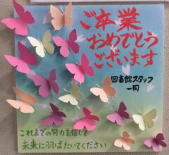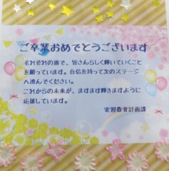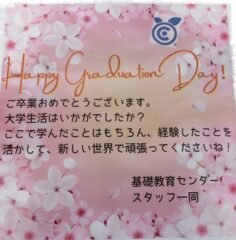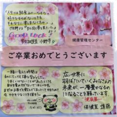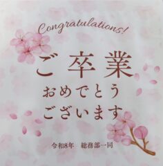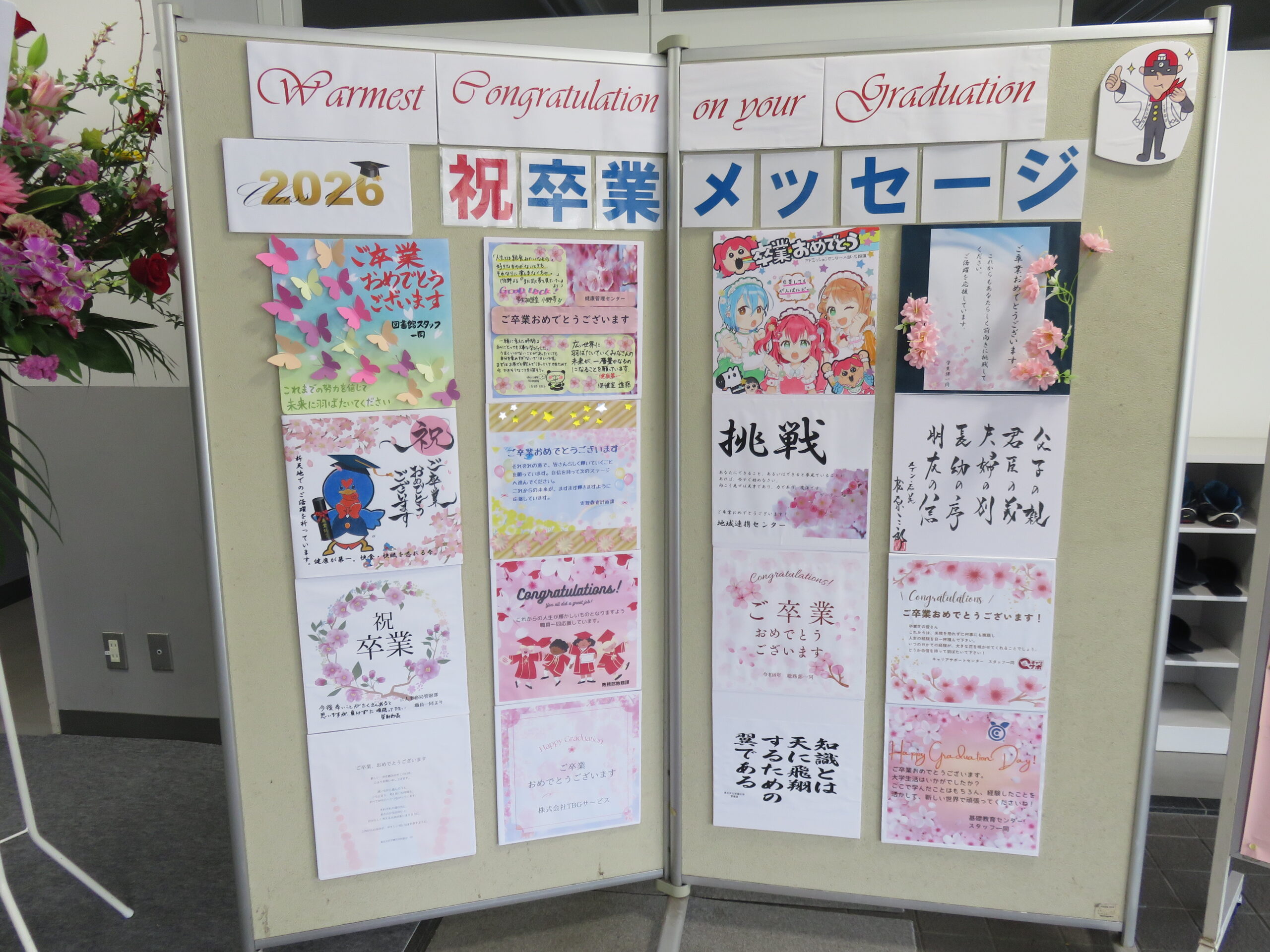毎年、同窓会から各部署へメッセージボード作成を依頼し、学位記授与式当日に掲示していているものです。